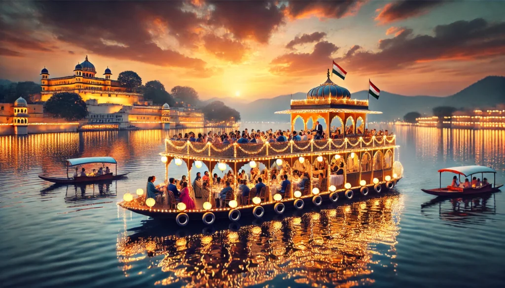 A Lake Pichola cruise offers one of the most romantic and pricey New Year reviews in Udaipur. Enjoy live tunes, lakeside dining, and magnificent fireworks reflected in the serene waters.