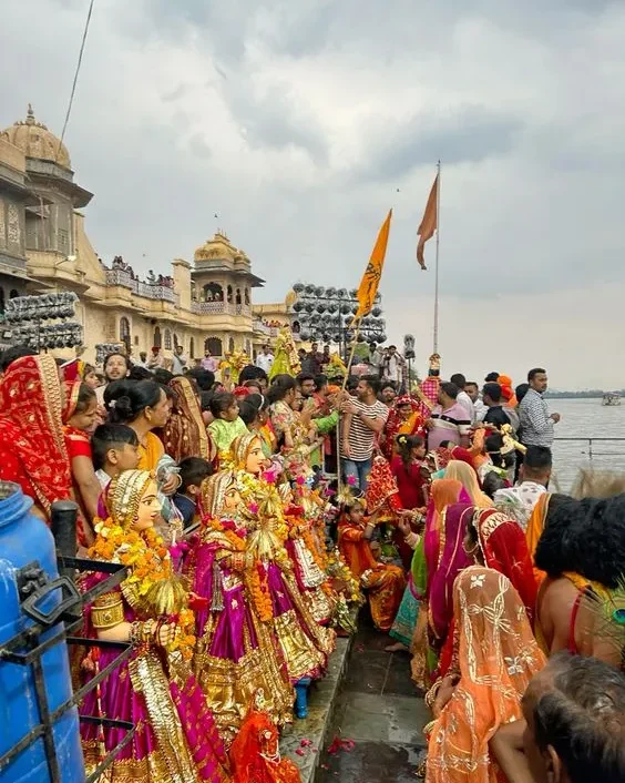 The festival concludes with the ceremonial immersion of the idols in the waters of Lake Pichola, symbolizing devotion and the completion of the festival rituals.