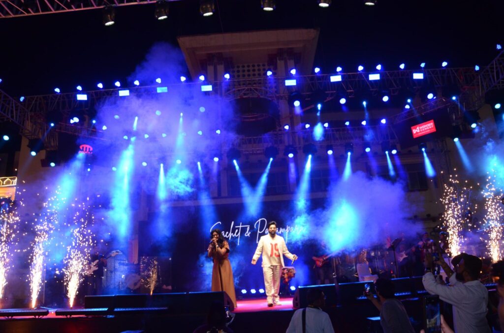 जैसे ही सचेत–परंपरा मंच पर आए, दर्शकों ने मोबाइल फ्लैशलाइट्स के साथ उनका स्वागत किया। हूटिंग और तालियों की गूंज ने पूरे हॉल को जीवंत बना दिया और माहौल उत्साहपूर्ण हो गया।