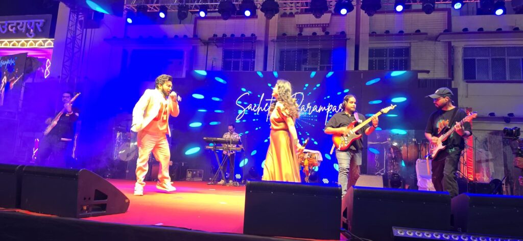 उदयपुर। दीपावली मेला 2025 (Diwali Fair 2025) अपने पूरे रंग और उल्लास के साथ चल रहा है। मंगलवार की शाम नगर निगम द्वारा आयोजित टाउन हॉल में मशहूर गायक जोड़ी सचेत टंडन और परंपरा ठाकुर ने मंच संभाला और हॉल तालियों, हूटिंग और दर्शकों के उत्साह से गूंज उठा। यह म्यूजिकल नाइट न केवल संगीतप्रेमियों के लिए, बल्कि पूरे उदयपुरवासियों के लिए यादगार बन गई।